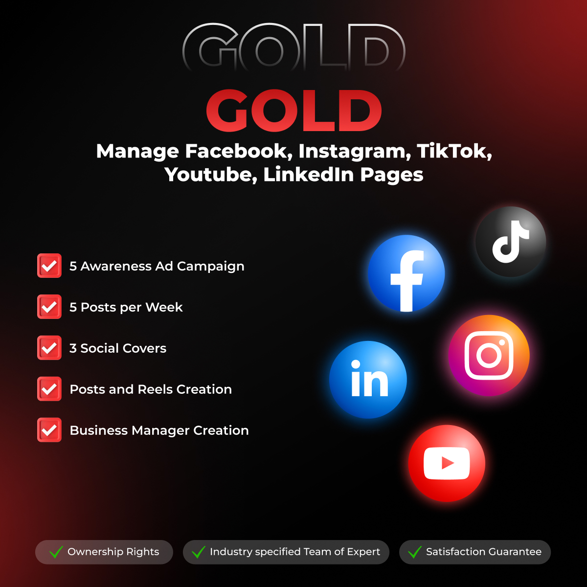 - Manage Facebook, Instagram, TikTok, Youtube, LinkedIn Pages